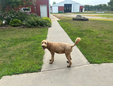 Max and Millie both have goofy personalities. Max likes to chase ducks, chickens, and goats. Millie would rather be friends with them and take naps with them. They have the Poodle personality but the loyal Golden Retriever in them. Both are excellent family members here on the farm!